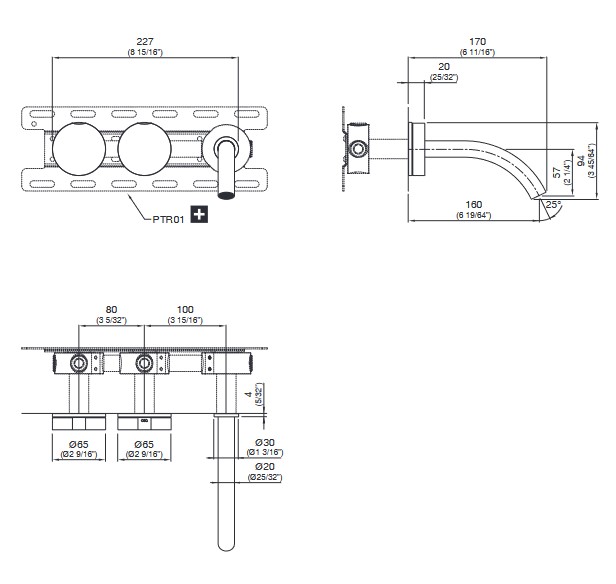 CEA Giotto Bateria umywalkowa ścienna z wylewką 17 cm element zewnętrzny Satin Stainless Steel GIO11S