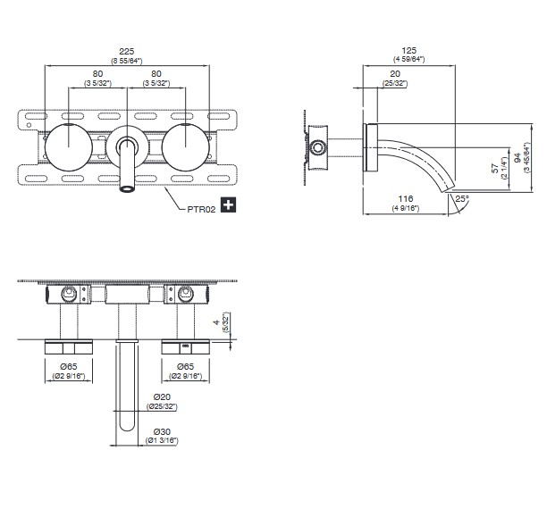 CEA Giotto Bateria umywalkowa ścienna z wylewką 12,5 cm element zewnętrzny Satin Stainless Steel GIO13S
