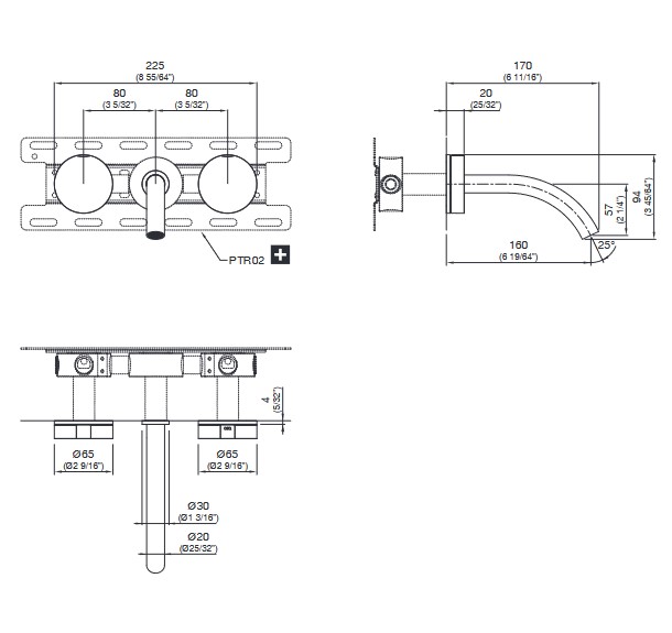 CEA Giotto Bateria umywalkowa ścienna z wylewką 17 cm element zewnętrzny Satin Stainless Steel GIO14S