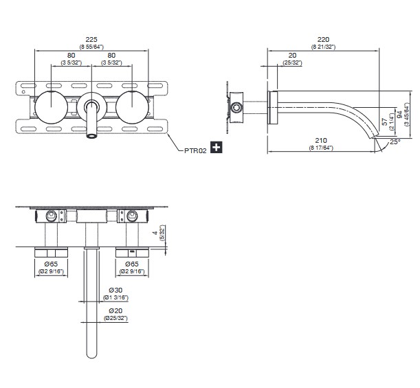 CEA Giotto Bateria umywalkowa ścienna z wylewką 22 cm element zewnętrzny Satin Stainless Steel GIO43S