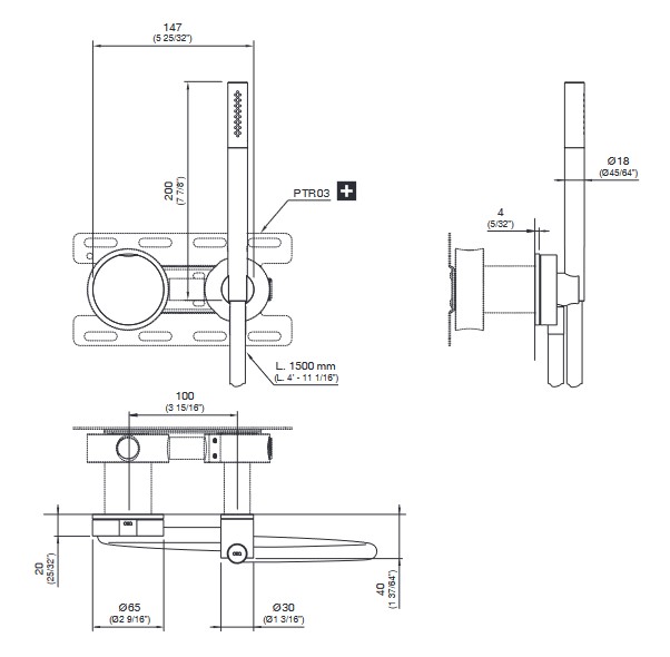 CEA Giotto Bateria wannowa/prysznicowa ścienna z słuchawką i wężem element zewnętrzny Satin Stainless Steel GIO24WS