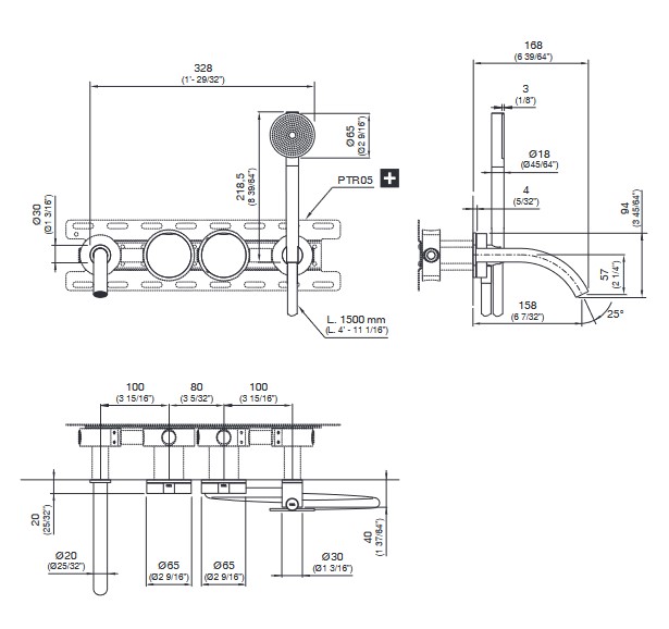 CEA Giotto Bateria wannowa ścienna z wylewką, słuchawką i wężem element zewnętrzny Satin Stainless Steel GIO26YWS