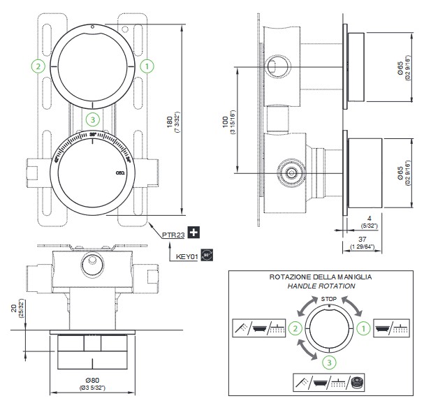 CEA Giotto Bateria prysznicowa ścienna termostatyczna z przełącznikiem 2/3-drożnym element zewnętrzny Satin Stainless Steel GIO56S