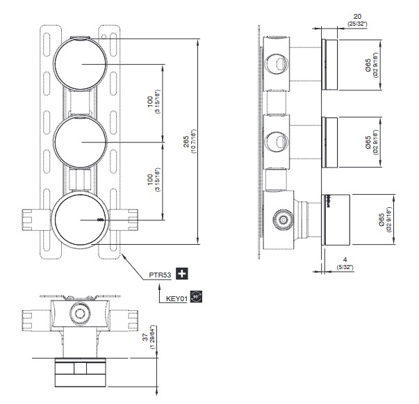 CEA Giotto Bateria prysznicowa ścienna termostatyczna z 2 zaworami odcinającymi element zewnętrzny Satin Stainless Steel GIO58S
