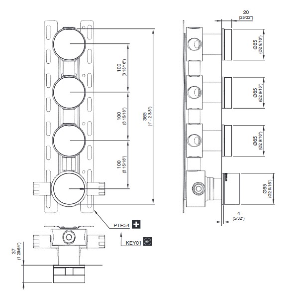 CEA Giotto Bateria prysznicowa ścienna termostatyczna z 3 zaworami odcinającymi element zewnętrzny Satin Stainless Steel GIO59S