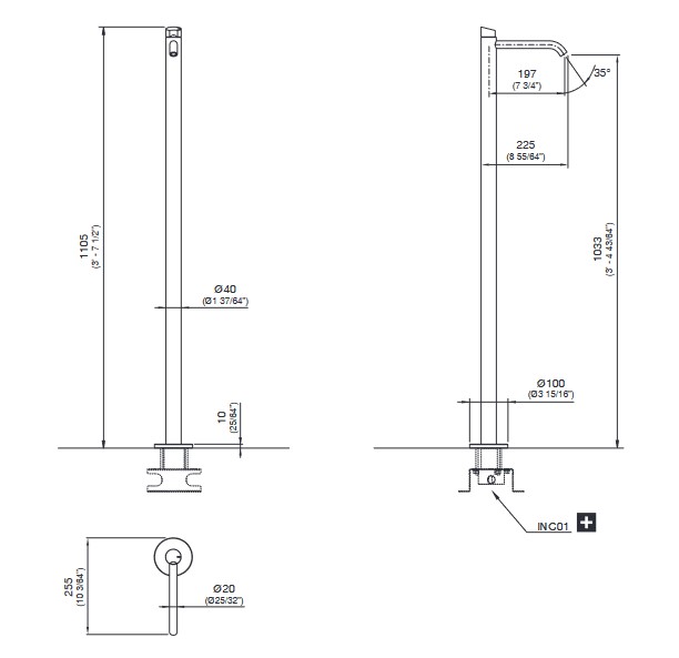 CEA Ziqq Bateria umywalkowa wolnostojąca element zewnętrzny Satin Stainless Steel ZIQ41S