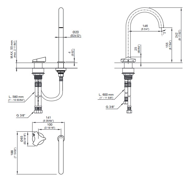 CEA Ziqq Bateria umywalkowa 2-otworowa z obrotową wylewką Black Diamond Satin ZIQ34KDS