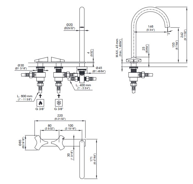 Wysięg wylewki: 14,6 cm