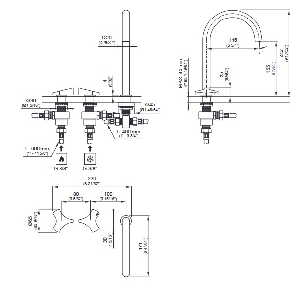 CEA Ziqq Bateria umywalkowa 3-otworowa z obrotową wylewką Copper Satin ZIQ11PS