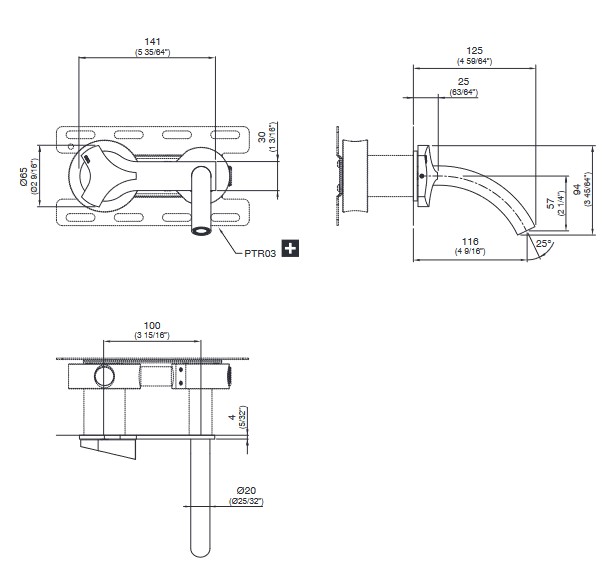 CEA Ziqq Bateria umywalkowa ścienna z wylewką 12,5 cm element zewnętrzny Satin Stainless Steel ZIQ26S
