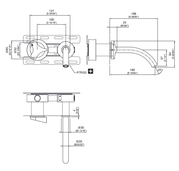 CEA Ziqq Bateria umywalkowa ścienna z wylewką 17 cm element zewnętrzny Satin Stainless Steel ZIQ30S