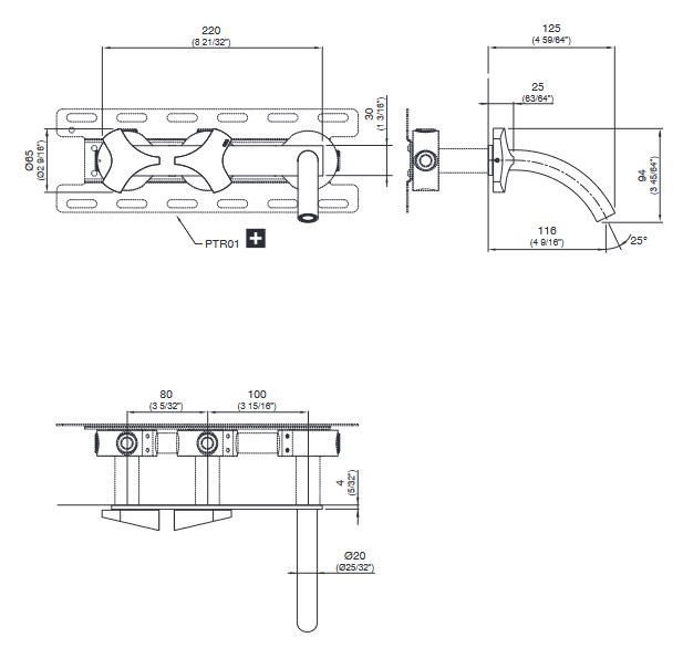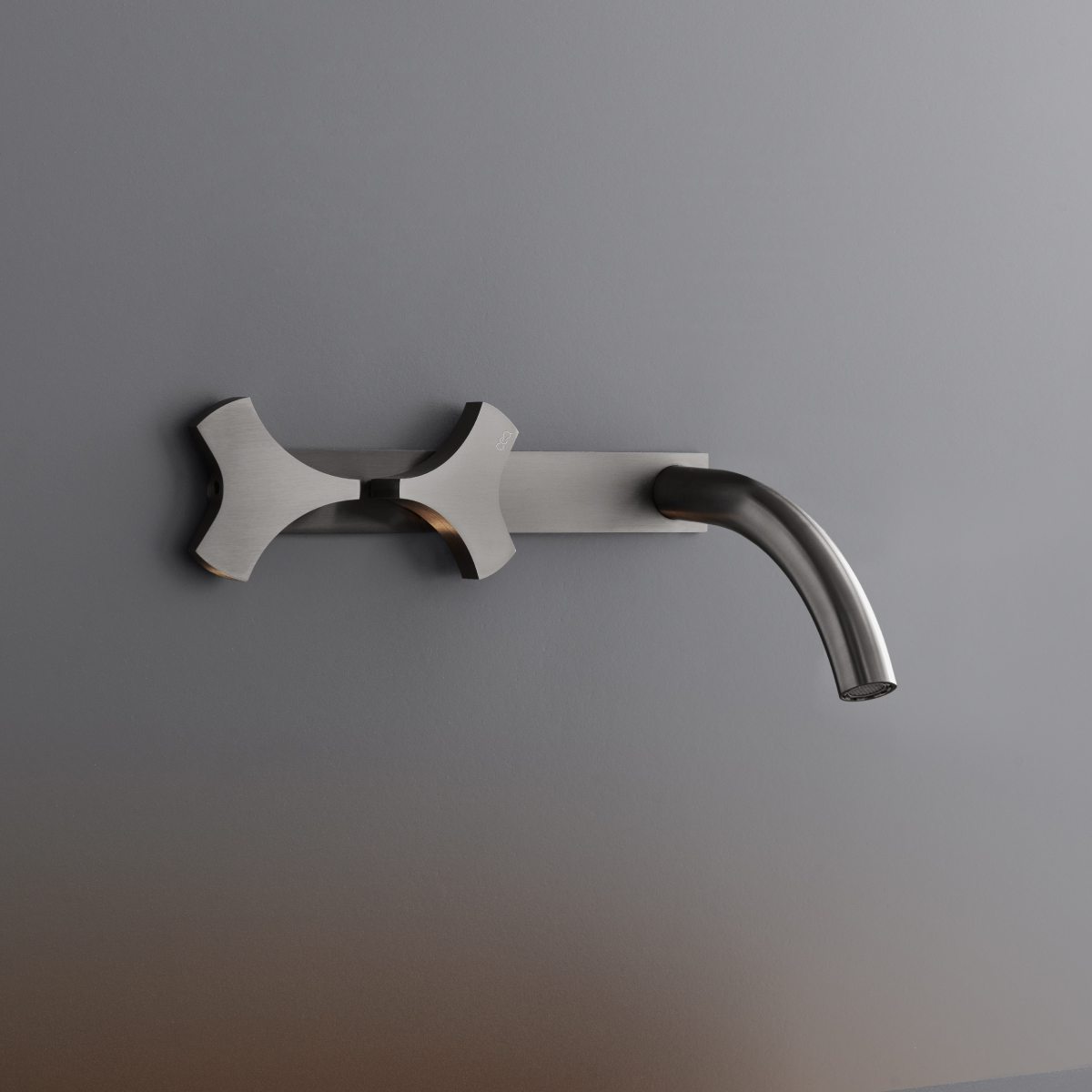 CEA Ziqq Bateria umywalkowa ścienna z wylewką 12,5 cm element zewnętrzny Satin Stainless Steel ZIQ01S