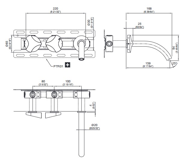 CEA Ziqq Bateria umywalkowa ścienna z wylewką 17 cm element zewnętrzny Satin Stainless Steel ZIQ05S