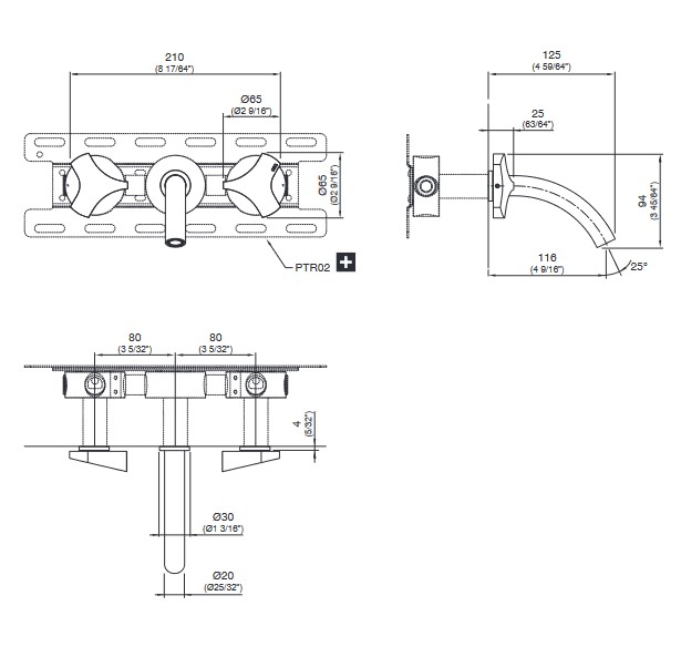 CEA Ziqq Bateria umywalkowa ścienna z wylewką 12,5 cm element zewnętrzny Satin Stainless Steel ZIQ07S
