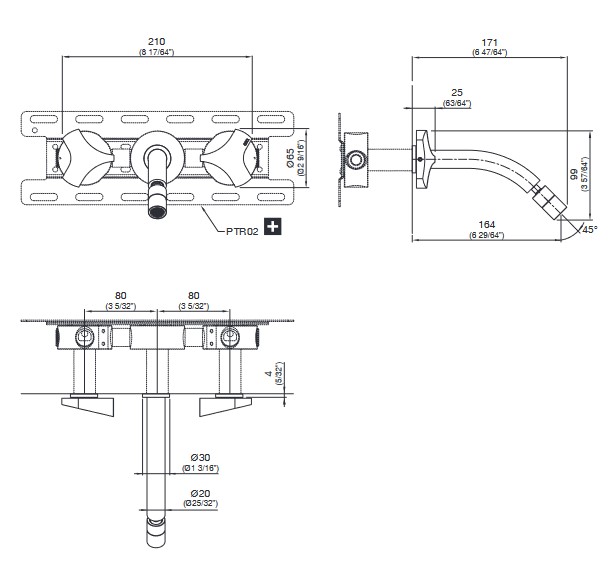 CEA Ziqq Bateria bidetowa ścienna z regulowaną wylewką element zewnętrzny Satin Stainless Steel ZIQ09S