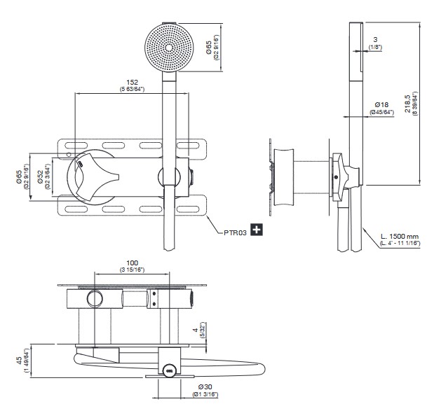 CEA Ziqq Bateria wannowa/prysznicowa ścienna z słuchawką i wężem element zewnętrzny Satin Stainless Steel ZIQ42YWS