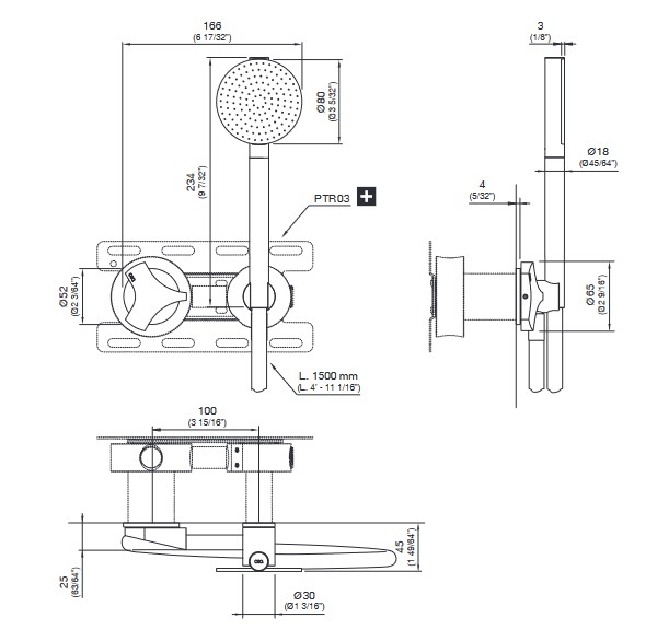 CEA Ziqq Bateria wannowa/prysznicowa ścienna z słuchawką i wężem element zewnętrzny Satin Stainless Steel ZIQ48HWS
