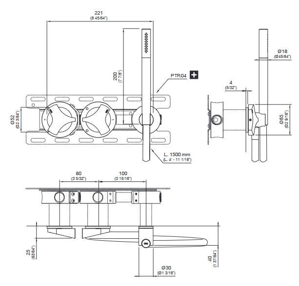 CEA Ziqq Bateria wannowa/prysznicowa ścienna z słuchawką i wężem element zewnętrzny Light Gold Satin ZIQ49WXS