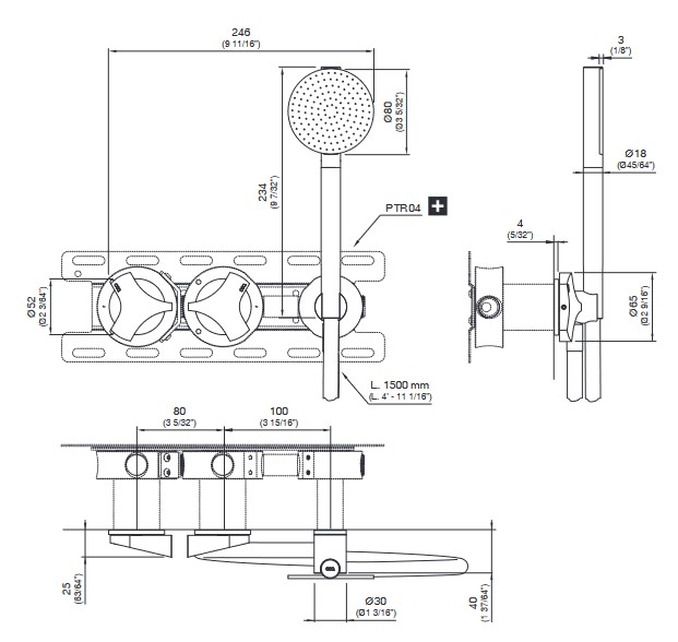 CEA Ziqq Bateria wannowa/prysznicowa ścienna z słuchawką i wężem element zewnętrzny Satin Stainless Steel ZIQ49HWS