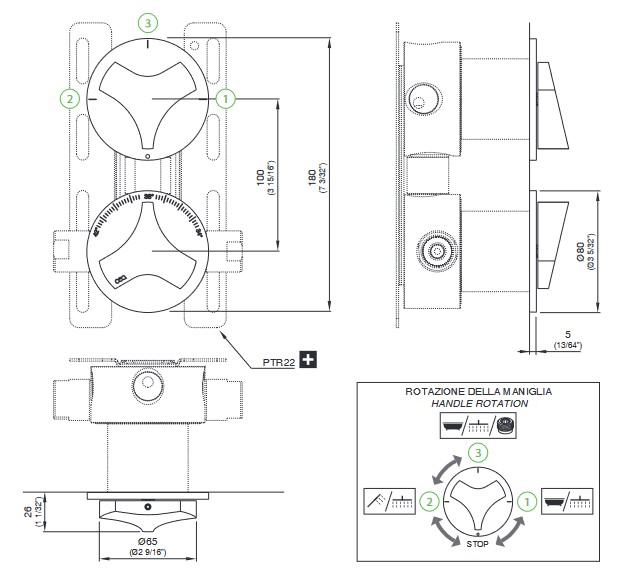 CEA Ziqq Bateria prysznicowa ścienna termostatyczna z przełącznikiem 2/3-drożnym element zewnętrzny Satin Stainless Steel ZIQ72S