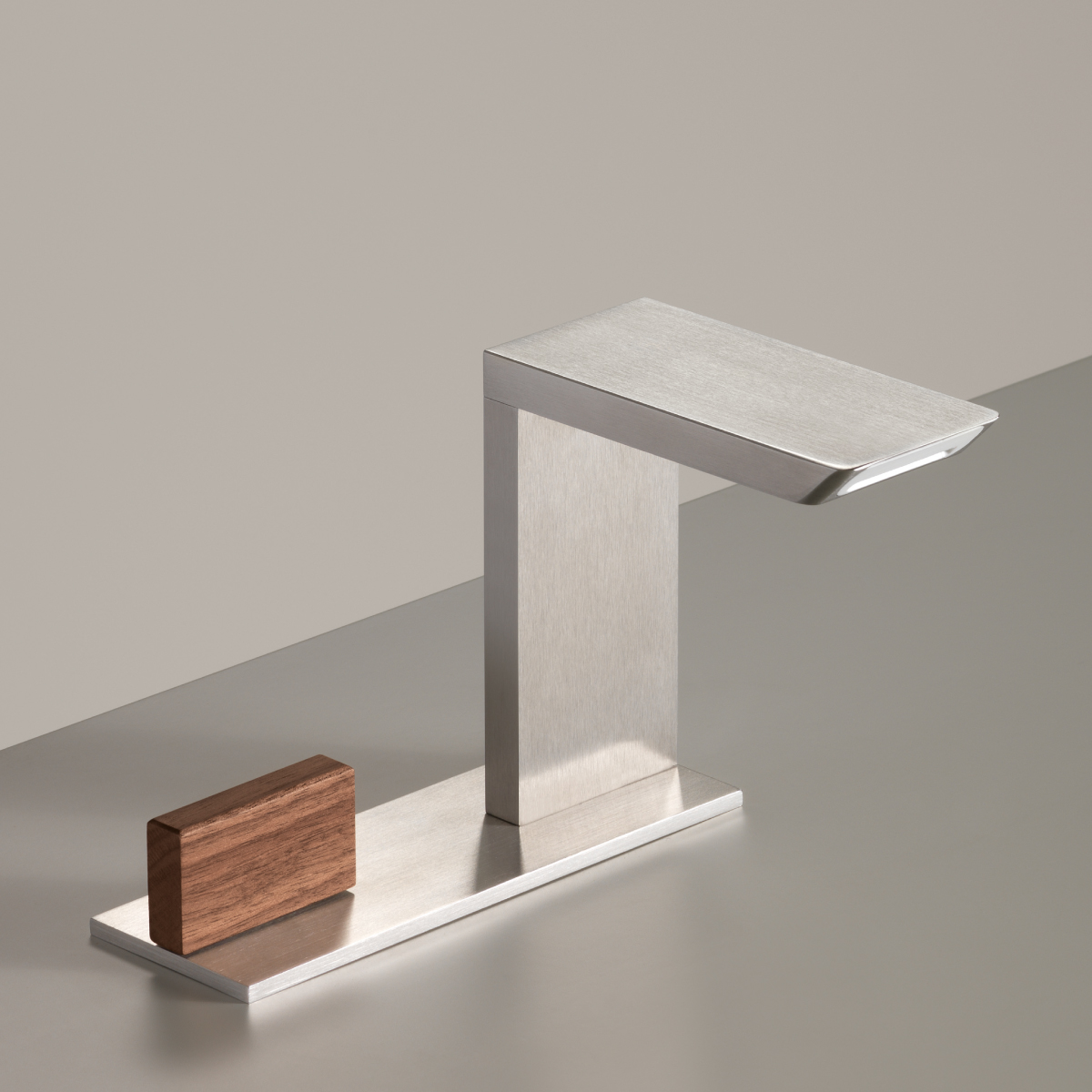CEA Bar Bateria umywalkowa 2-otworowa z mieszaczem progresywnym Satin Stainless Steel+Canaletto Walnut BAR19NS