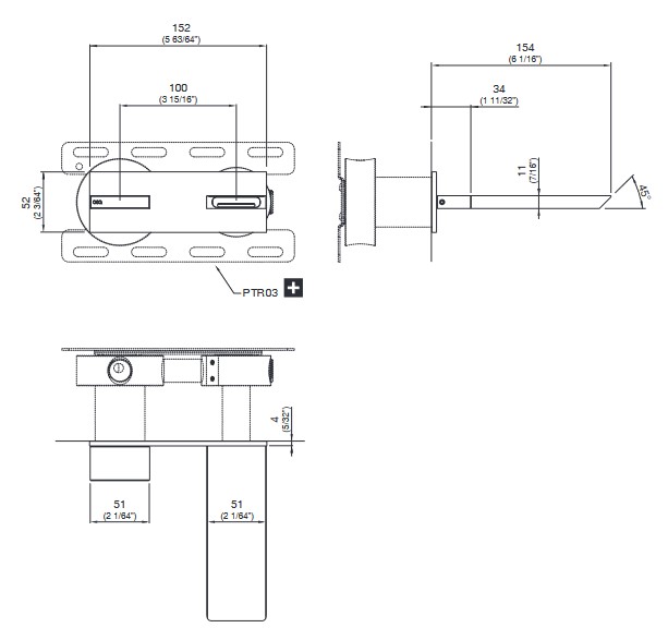 CEA BAR Bateria umywalkowa ścienna element zewnętrzny Satin Stainless Steel BAR16S