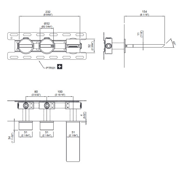 CEA BAR Bateria umywalkowa ścienna element zewnętrzny Satin Stainless Steel BAR24S