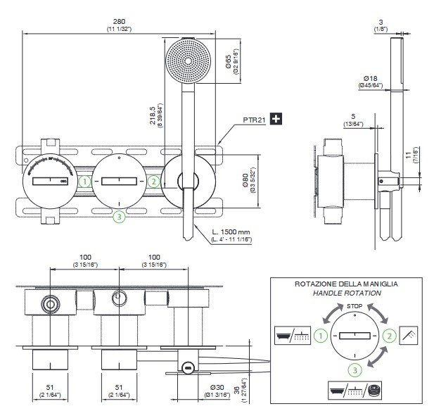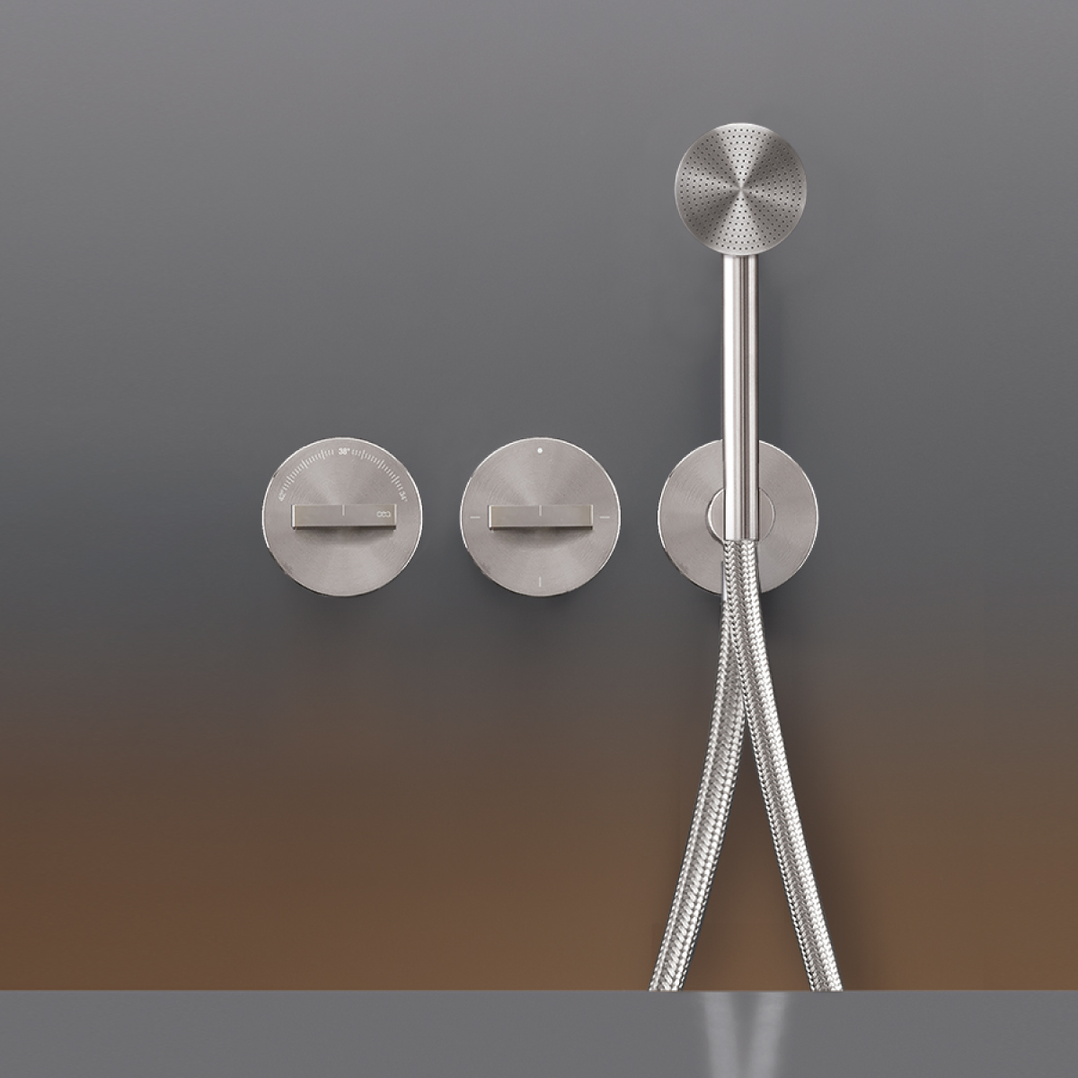 CEA BAR Bateria wannowa/prysznicowa ścienna termostatyczna z przełącznikiem 2/3-drożnym, słuchawką i wężem element zewnętrzny Satin Stainless Steel BAR69YIS