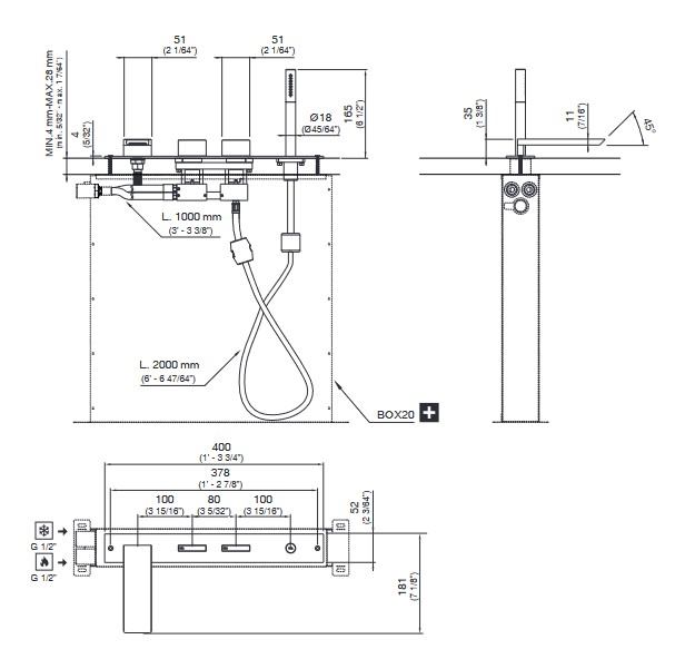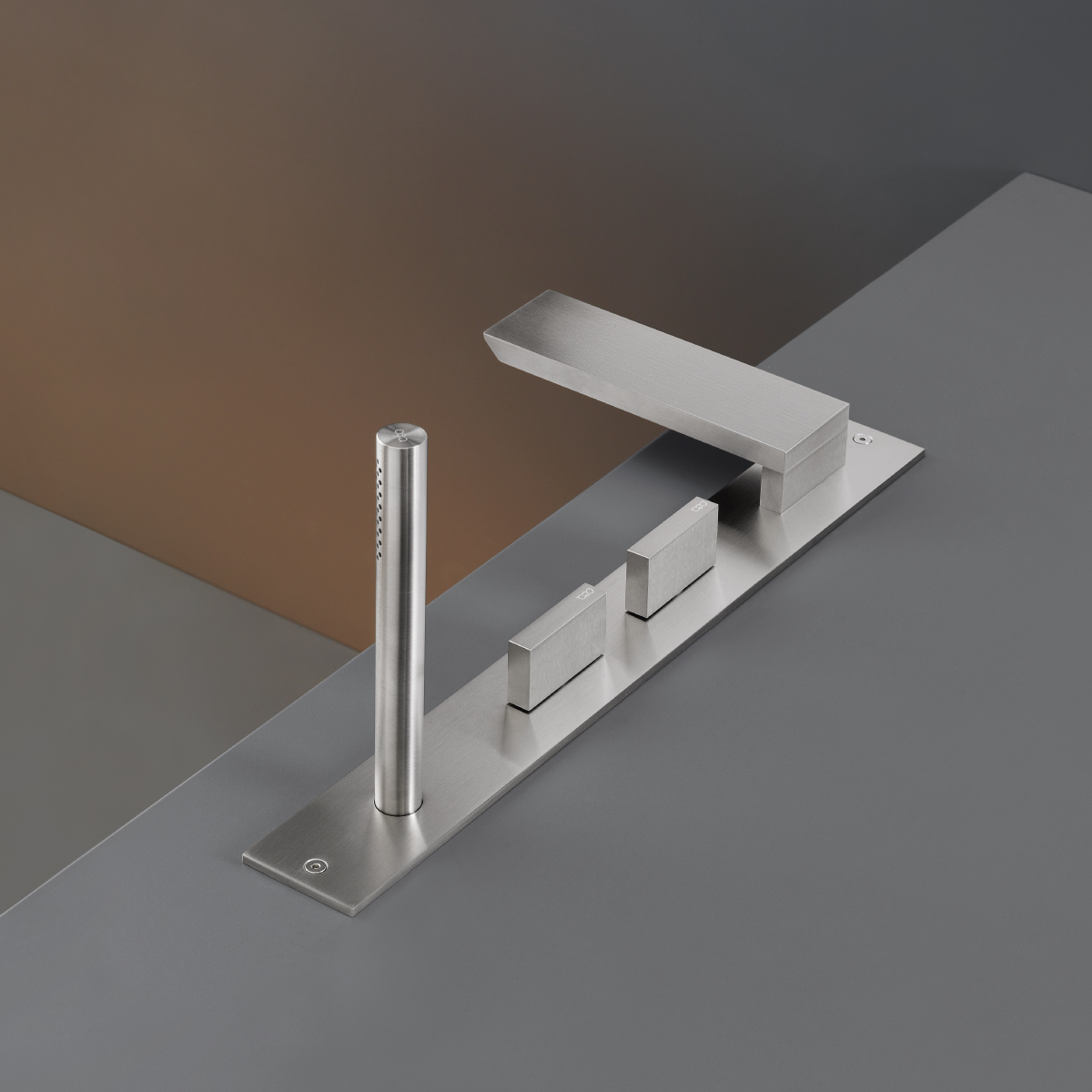 CEA BAR Bateria wannowa 4-otworowa na brzeg wanny z wylewką i słuchawką prysznicową element zewnętrzny Satin Stainless Steel BAR37S