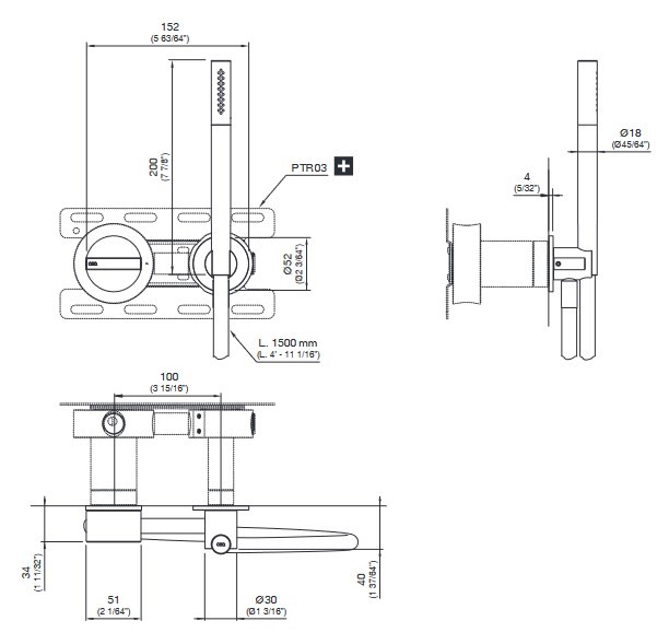 CEA BAR Bateria wannowa/prysznicowa ścienna z słuchawką i wężem element zewnętrzny Satin Stainless Steel BAR38WS