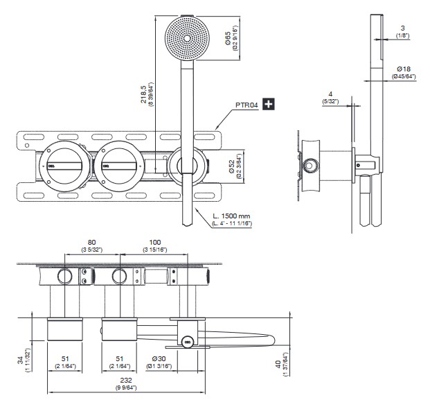 CEA BAR Bateria wannowa/prysznicowa ścienna z słuchawką i wężem element zewnętrzny Satin Stainless Steel BAR39YWS