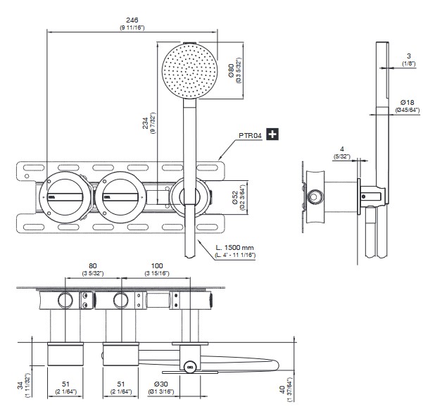 CEA BAR Bateria wannowa/prysznicowa ścienna z słuchawką i wężem element zewnętrzny Satin Stainless Steel BAR39HWS