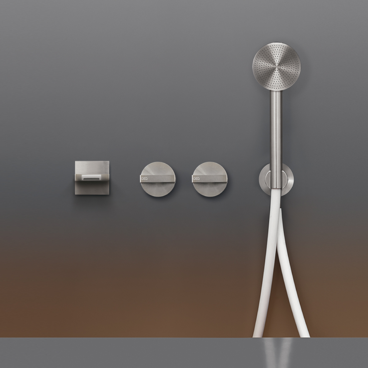 CEA BAR Bateria wannowa ścienna z wylewką, słuchawką i wężem element zewnętrzny Satin Stainless Steel BAR40YWS