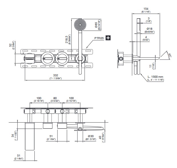 Rozstaw przyłączy: 10, 8 i 10 cm
