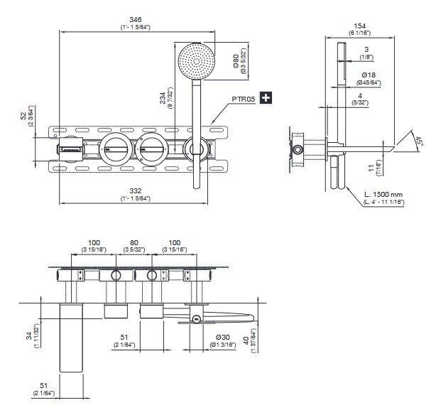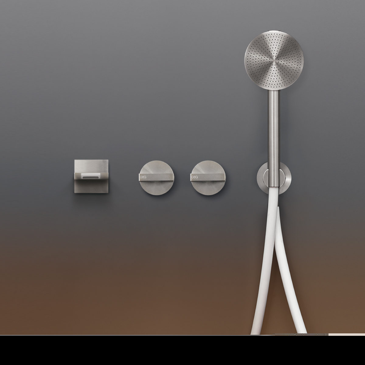 CEA BAR Bateria wannowa ścienna z wylewką, słuchawką i wężem element zewnętrzny Satin Stainless Steel BAR40HWS