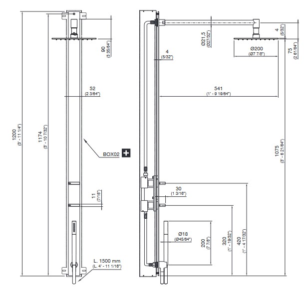 Rozstaw przyłączy: 117,4 cm