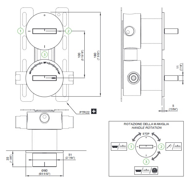 CEA BAR Bateria prysznicowa ścienna termostatyczna z przełącznikiem 2/3-drożnym element zewnętrzny Satin Stainless Steel BAR70S