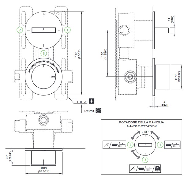 CEA BAR Bateria prysznicowa ścienna termostatyczna z przełącznikiem 2/3-drożnym element zewnętrzny Satin Stainless Steel BAR71S