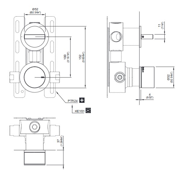 CEA BAR Bateria prysznicowa ścienna termostatyczna z zaworem odcinającym element zewnętrzny Satin Stainless Steel BAR72S