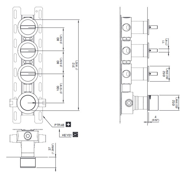 CEA BAR Bateria prysznicowa ścienna termostatyczna z 3 zaworami odcinającymi element zewnętrzny Satin Stainless Steel BAR74S