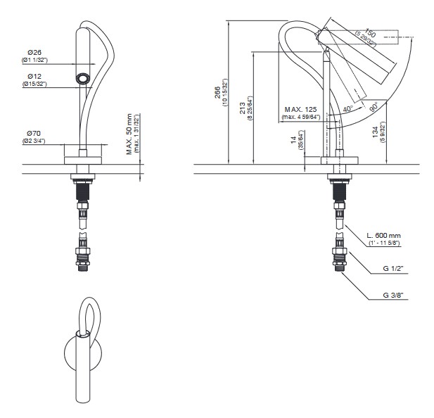 CEA Asta Wylewka jednootworowa wyjmowana i regulowana H26,5 cm Satin Stainless Steel AST16WS