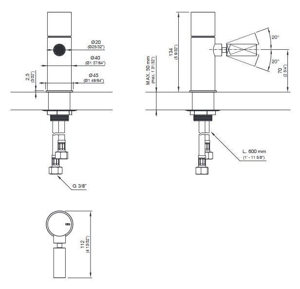 CEA Giotto Plus Bateria bidetowa jednootworowa z regulowaną wylewką Satin Stainless Steel GIO60S