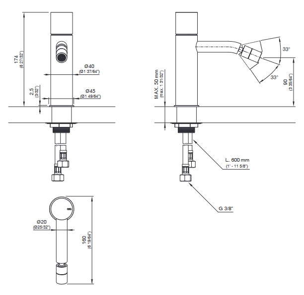 CEA Giotto Plus Bateria bidetowa jednootworowa z regulowaną wylewką Satin Stainless Steel GIO62S