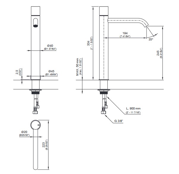CEA Giotto Plus Bateria umywalkowa jednootworowa do umywalki nablatowej H33,5 cm Satin Stainless Steel GIO64S