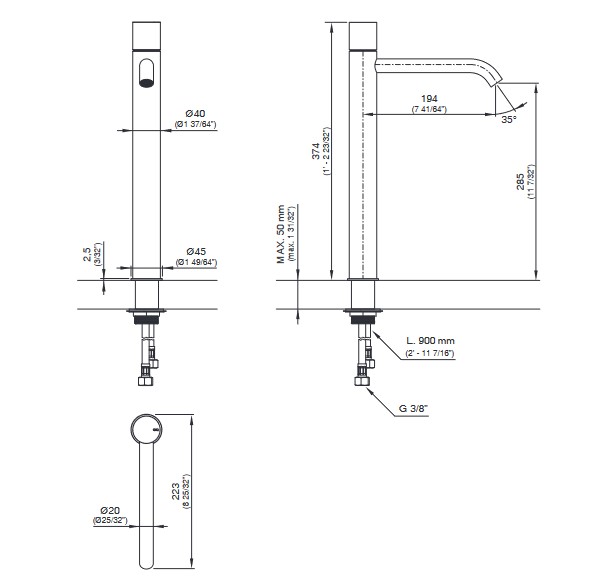 CEA Giotto Plus Bateria umywalkowa jednootworowa do umywalki nablatowej H37 cm Satin Stainless Steel GIO65S