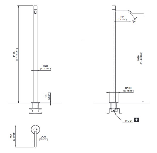 CEA Giotto Plus Bateria umywalkowa wolnostojąca element zewnętrzny Satin Stainless Steel GIO67S