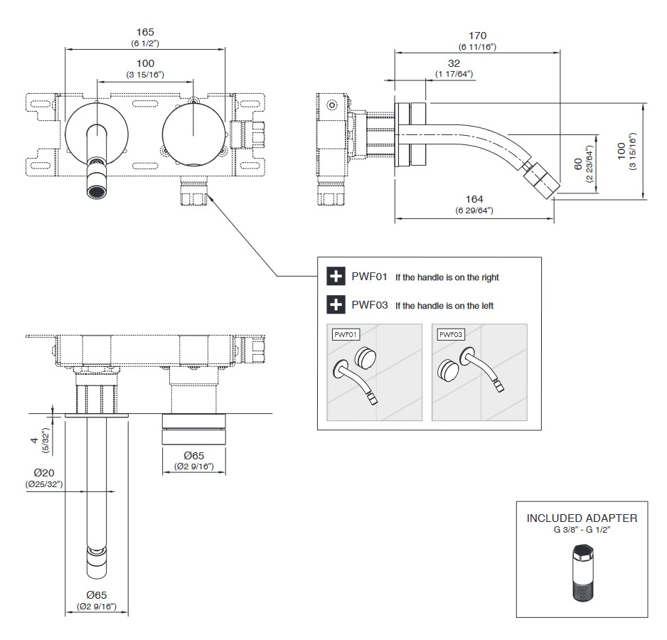 Element podtynkowy PWF03, wylewka z lewej