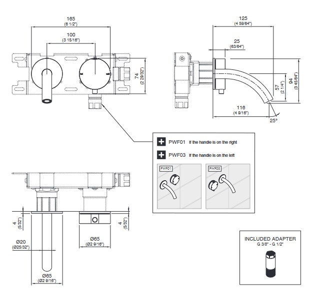 Element podtynkowy PWF03, wylewka z lewej