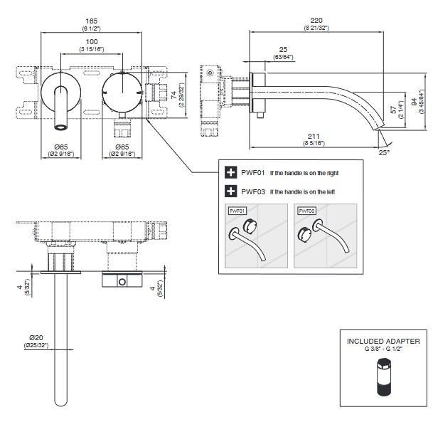 Element podtynkowy PWF03, wylewka z lewej