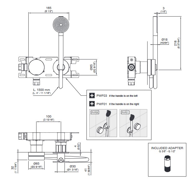 CEA Giotto Plus Bateria wannowa/prysznicowa ścienna z słuchawką i wężem element zewnętrzny Satin Stainless Steel GIO92WS